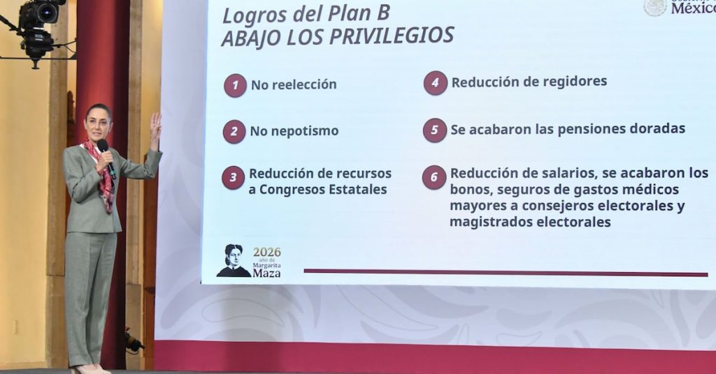 La presidenta Claudia Sheinbaum destacó los 6 mayores logros que se obtuvieron con la constitucionalidad del Plan B electoral, sobre todo relacionados con poner fin a los privilegios.