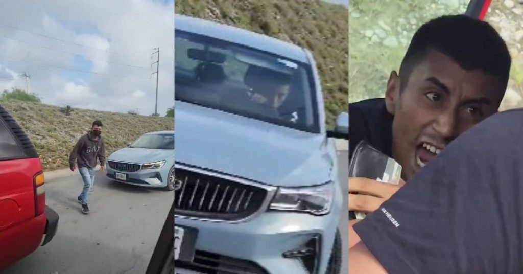Los asaltantes viajaban en un auto azul de la marca Geely con placas de Nuevo León SBC-985-C, en el que detuvieron a un conductor de una camioneta roja para amedrentarlo.