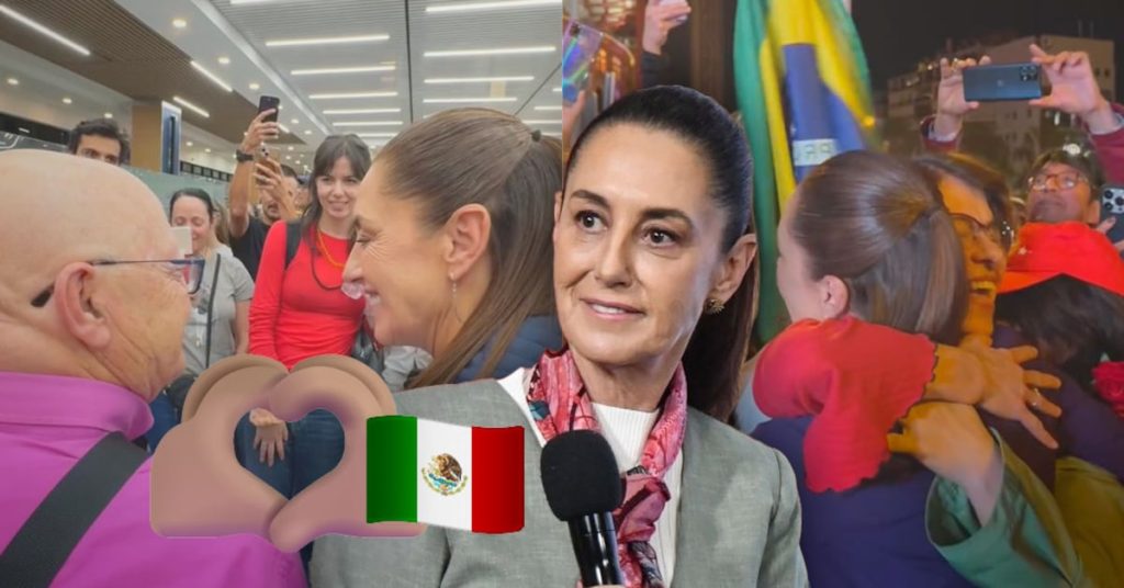 “¡Presidenta, presidenta!”, “Eres una fuente de inspiración” y “¡Viva México!” fueron algunos de los gritos con los que Sheinbaum fue recibida y, previo a ingresar a su hotel, agradeció el gesto.