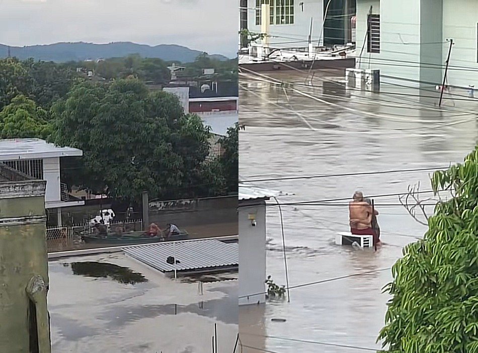 Tragedia en Poza Rica: Abuelitos son rescatados en lancha tras quedar atrapados en techo por inundaciones históricas