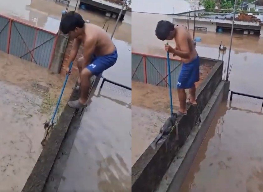 ¡HÉROE SIN CAPA! El video viral del joven que rescató a un gatito en medio de la inundación
