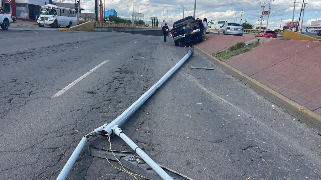 Publicidad Chihuahua, Chih. — Una aparatosa colisión se registró la tarde de este lunes sobre la avenida Tecnológico, a pocos metros del cruce con la calle Nogales, luego de que la conductora de una camioneta Dodge Ram perdiera el control del volante y terminara impactando contra un poste de alumbrado público, el cual fue derribado […]