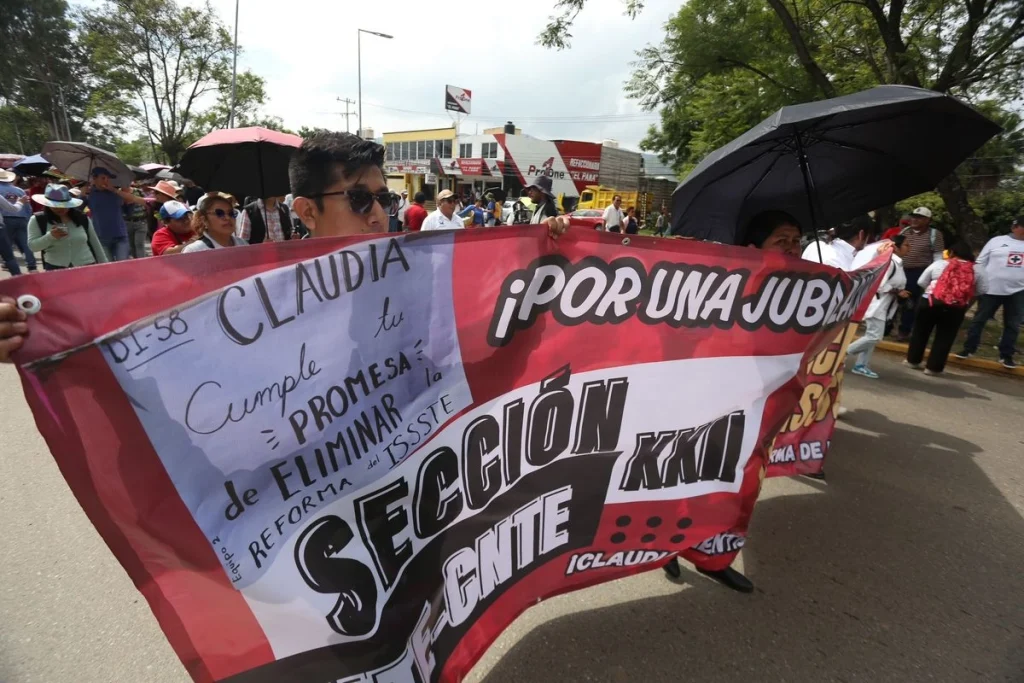 Publicidad La Coordinadora Nacional de los Trabajadores de la Educación (CNTE) aseguró que protestará en cada acto donde esté la presidenta Claudia Sheinbaum para exigir el cumplimiento de sus demandas y derribar el acoso mediático, que, dijo, buscan imponerle desde el Palacio Nacional. Yenny Pérez, dirigente de la Sección 22 de Oaxaca, dijo que las […]