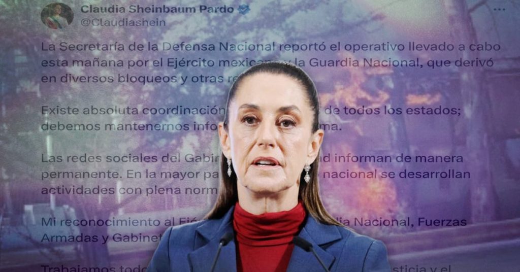 La presidenta de México, Claudia Sheinbaum Pardo, reconoció el operativo federal en el estado de Jalisco que llevó a la muerte de Nemesio Oseguera Cervantes, alias “El Mencho”, líder y fundador del Cártel Jalisco Nueva Generación (CJNG): A través de un mensaje en sus redes sociales, Claudia Sheinbaum destacó que este tipo de acciones en […]
